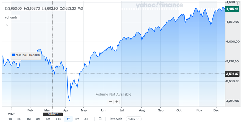 Despite challenges – the fallout from Liberation Day being the most significant in 2025 – global stock markets have demonstrated resilience. Renowned investing principal Warren Buffet dismissed market volatility in the spring as “really nothing” to worry about. He elaborated, “If it makes a difference to you whether your stocks are down 15%, you need to get a somewhat different investment philosophy.” Buffet added, “The world is not going to adapt to you. You’re going to have to adapt to the world. People have emotions but you’ve got to check them at the door when you invest.”